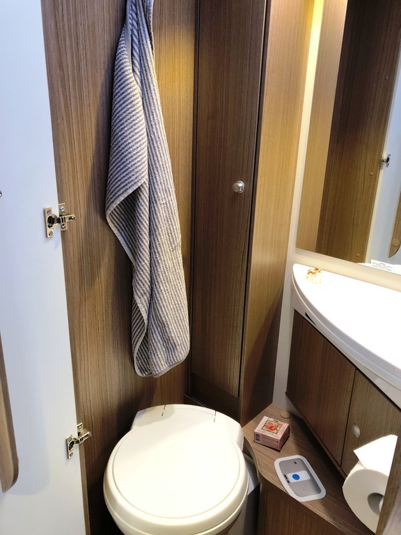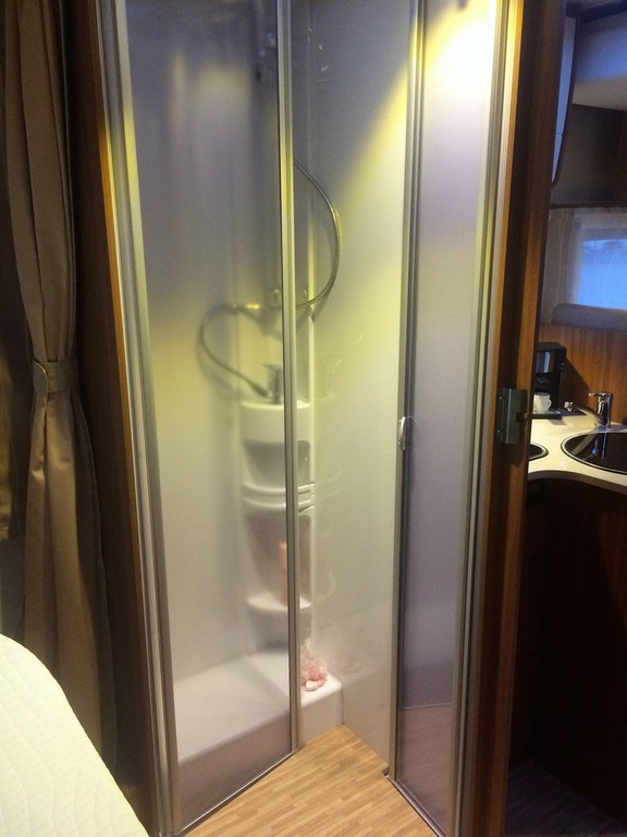 Auch dieses Wohnmobil ist mit einem Raumbad ausgestattet.